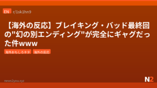 海外おもしろネタ 【海外の反応】ブレイキング・バッド最終回の”幻の別エンディング”が完全にギャグだった件www 『ブレイキング・バッド』最終回のDVD特典に収録された幻の別エンディングが話題に。ブライアン・クランストンが『マルコム in the Middle』のハルとして目を覚まし、全部悪夢だったというオチに海外ファン大盛り上がり。 2026.04.14 海外おもしろネタ海外の反応