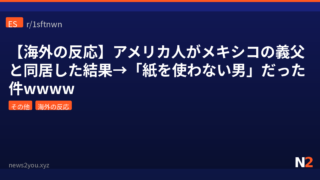 その他 【海外の反応】アメリカ人がメキシコの義父と同居した結果→「紙を使わない男」だった件wwww メキシコ人の嫁を持つアメリカ人が義父と同居した結果、トイレットペーパーを使わない衝撃の事実が発覚。メキシコ人も全力で「普通じゃない」と否定する地獄の同居生活とは。 2026.04.13 その他海外の反応
