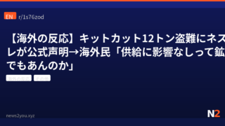 その他 【海外の反応】キットカット12トン盗難にネスレが公式声明→海外民「供給に影響なしって鉱山でもあんのか」 イタリアでキットカット12トンが盗まれ、ネスレが公式声明を発表。海外ネット民は「供給に影響なしってどんだけ作ってんだ」「キットカット鉱山があるのでは」と大盛り上がり。 2026.04.04 その他海外の反応